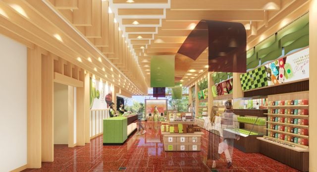 店内にはお茶の香りが広がり、茶箱をイメージした販売台やカカオツリーとともに、抹茶&カカオの世界観を演出します。