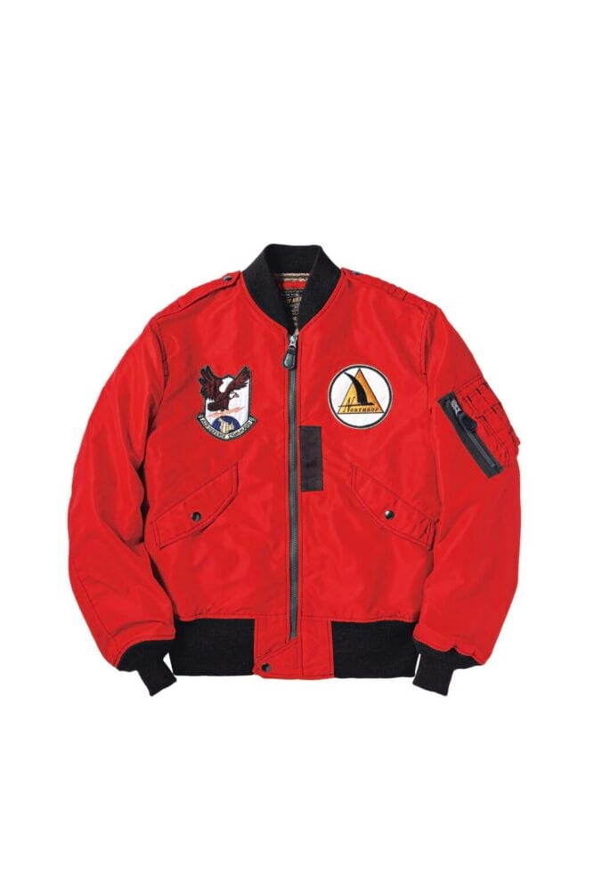 1950年代中期、防空用要撃機としてノースロップ社が開発した「F-89スコーピオン」。そのテスト機のプロモーション用に撮影された写真のなかで2名のパイロットが着用した赤いシェルに黒のリブが特徴的なMA-1系フライトジャケットにバズリクソンズは着目。当時の同社のプロモーションにかける意気込みが感じられる1着は、コマーシャル用に関係者のみに用意された希少性もさることながら、ビビッドなカラーとパッチが圧倒的な存在感を放つ。9万4600円