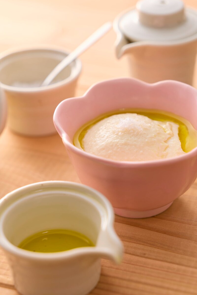 専門店ならではのこだわり豆腐は、3種の調味料(だし醤油・オリーブオイル・マルドンの天然塩)で自分好みに仕立てて召し上がれ♡