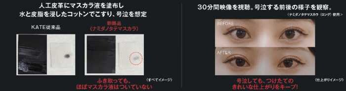 KATEは、アイメイク崩れの原因となる「涙・皮脂・摩擦」に着目。特に涙を拭う“号泣”という過酷な環境でも落ちにくいアイメイクを目指し、新ライン「号泣の涙神」を開発しました。