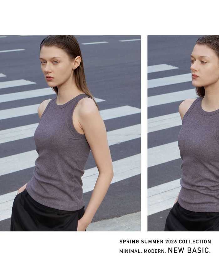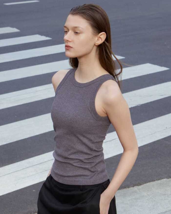 アメリカンスリーブの絶妙なカットが特徴。太めパイピングがアクセントとなり、綿混リブ素材でヘルシーな着こなしを叶えます。