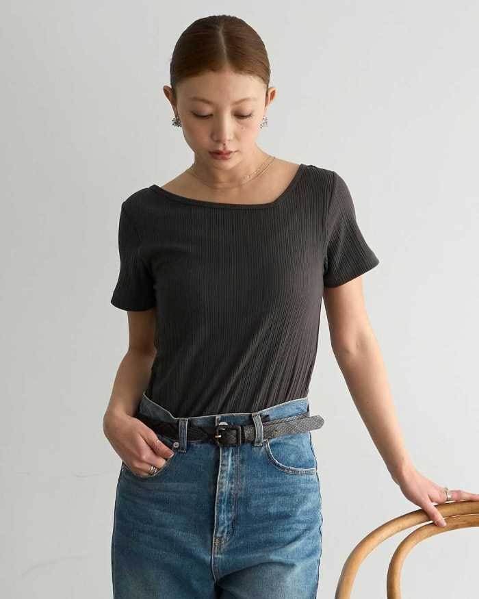 カップ イン リブオフショルT ハーフ