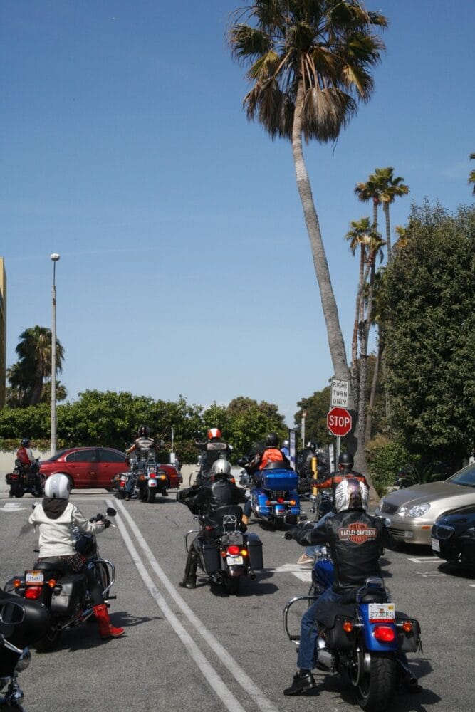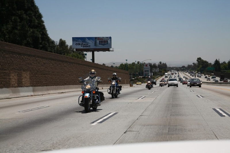 先導するクルマ2台の後ろをハーレー15台というかなり長い列で走る一行。全員無線が支給されており、途中信号などで列が途切れてしまっても何とかなっていた。しかし、街中に入って交通量が増えると、隊列を組んで走るのが難しくなっていく。そしてハイウェイを走っている時に事件が起きた。