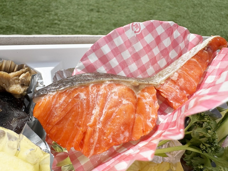 たとえば焼き鮭、最初に見たときは存在を確認できなかったのだが、具をかき分けたところ、隙間に入っていた。これ1000円の駅弁として、ちょっとあり得ないレベルで贅沢。しっかりと利益が出るのかどうか心配になるレベル。