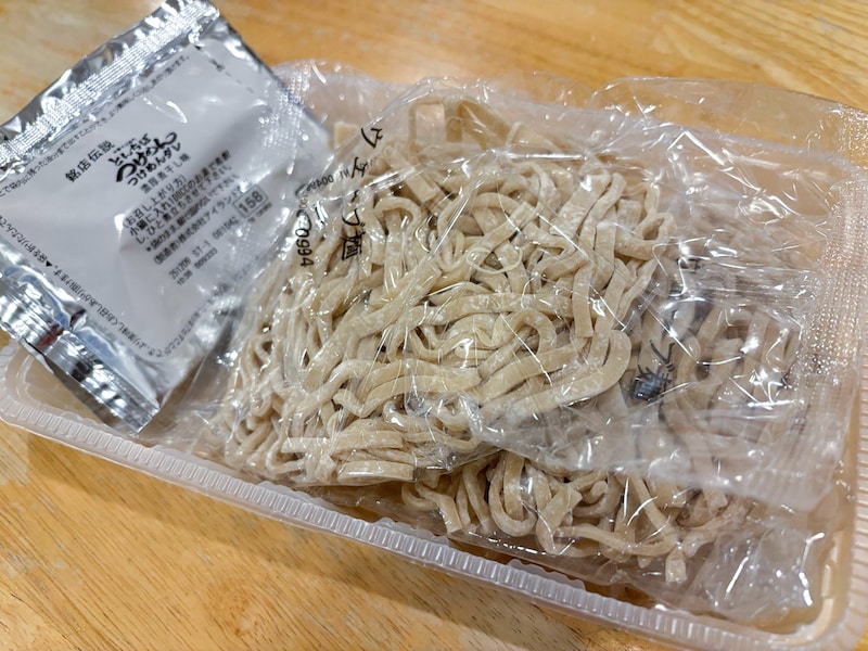 そんな人気店の味を家庭用チルド麺として再現したのが、今回の「中華そば専門 とんちぼ つけめん」だ。作り方はシンプルで、まず麺をたっぷりの湯で6分ほど茹でる。しっかりと時間をかけて茹で上げることで、極太のちぢれ麺がふっくらと仕上がる。その後、流水で締めれば準備完了だ。
