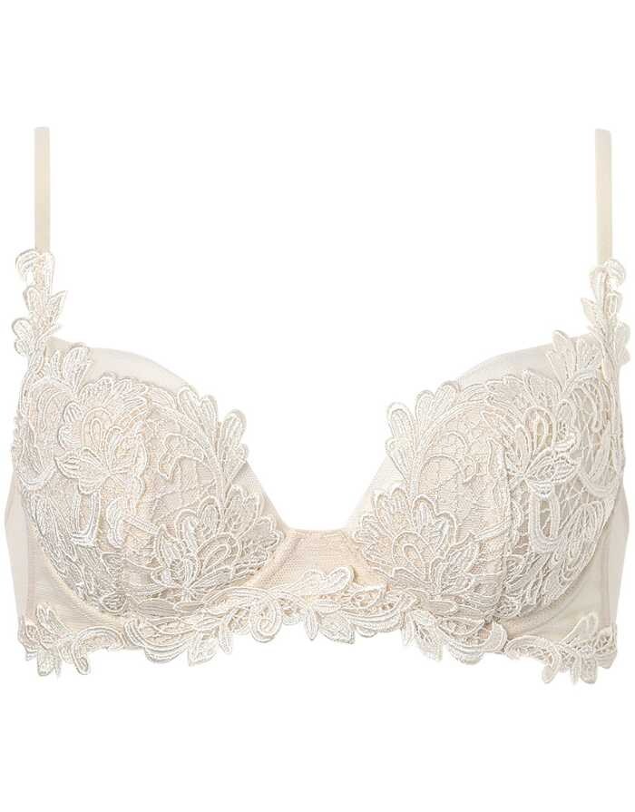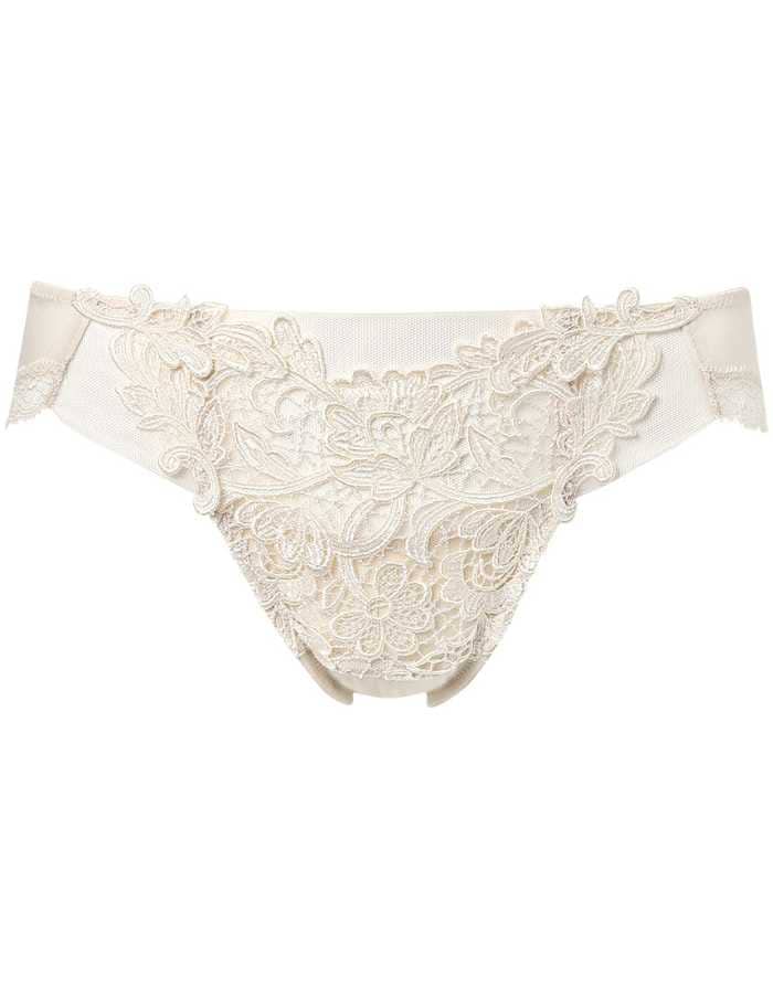 光を浴びた葉の影をイメージしたレースとシアーなリバーレースを重ねたクチュール感のあるデザイン。自然に囲まれた楽園のような軽やかなムードを演出します。