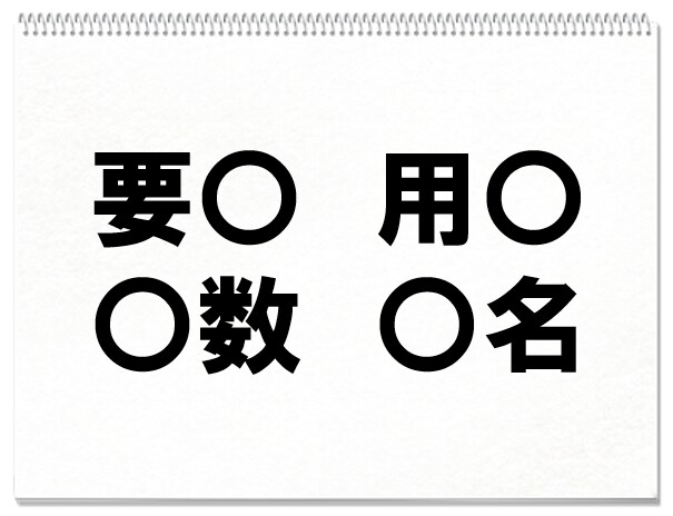 それぞれ「要件」「用件」「件数」「件名」となります。