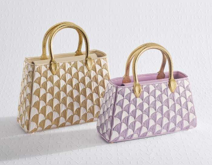 繊細な刺繍工程によって形作られた“カラ”パターンや、アイコニックなスネークヘッドクロージャーなど、ブルガリならではの美しいディテールが際立ちます。