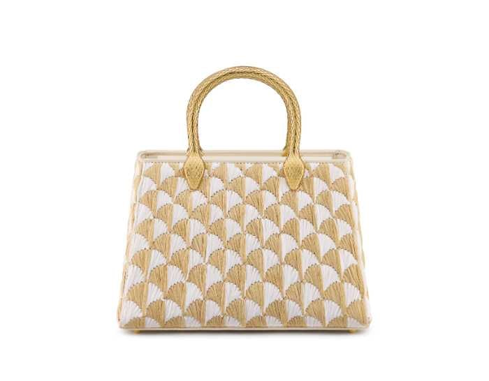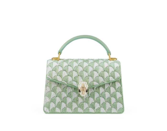 繊細な刺繍工程によって形作られた“カラ”パターンや、アイコニックなスネークヘッドクロージャーなど、ブルガリならではの美しいディテールが際立ちます。