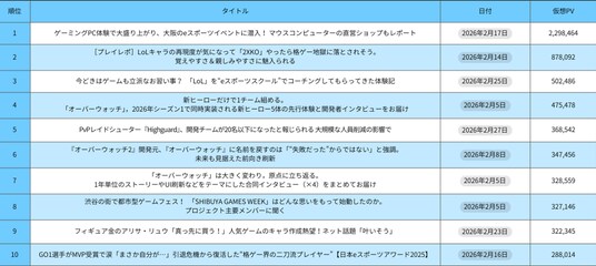 今回、株式会社トドオナダ(代表取締役社長 松本泰行)は、2026年2月1日 ~ 2月28日の「E-SPORTS」に関するウェブニュースについて複数タイトルを抜粋し、調査・分析、ランキング化いたしました。4,000以上のWEBメディアをモニタリングできるPR効果測定サービス「Qlipper」( https://qlipper.jp/ )のデータに基づいた調査結果です。