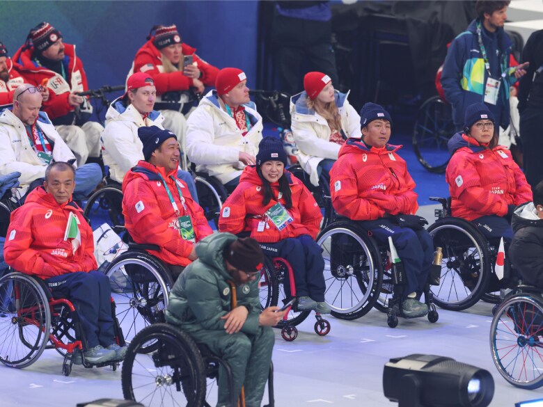 次に、ミラノ・コルティナ2026オリンピックのマスコット「ティナ」とパラリンピックのマスコット「ミロ」が軽快なステップを踏みながら登場し、各国の国旗と旗手が入場。日本代表選手団の旗手は、パラスノーボードの小須田潤太と、車いすカーリングの小川亜希。どちらも満面の笑みで、小川の車いすにポールを差した国旗を小須田が大きく広げながら行進した。