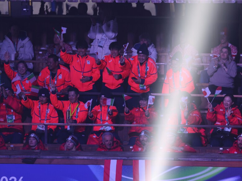 観客席で国旗を振る日本代表選手団photo by AFLO SPORT
