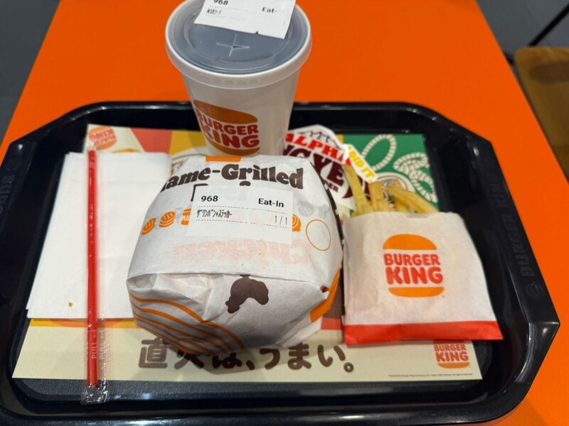 バーガーがドン!とトレイに入ったセット、デカい。重い。
