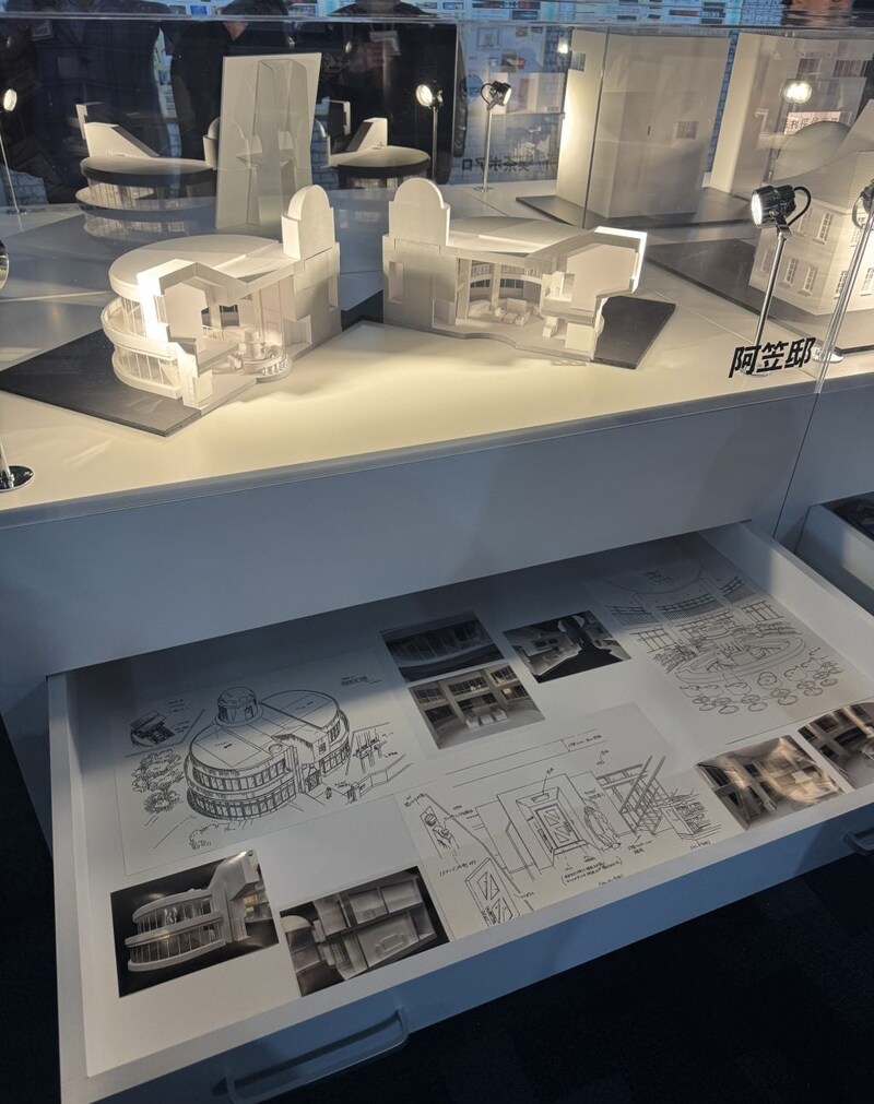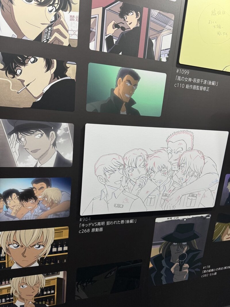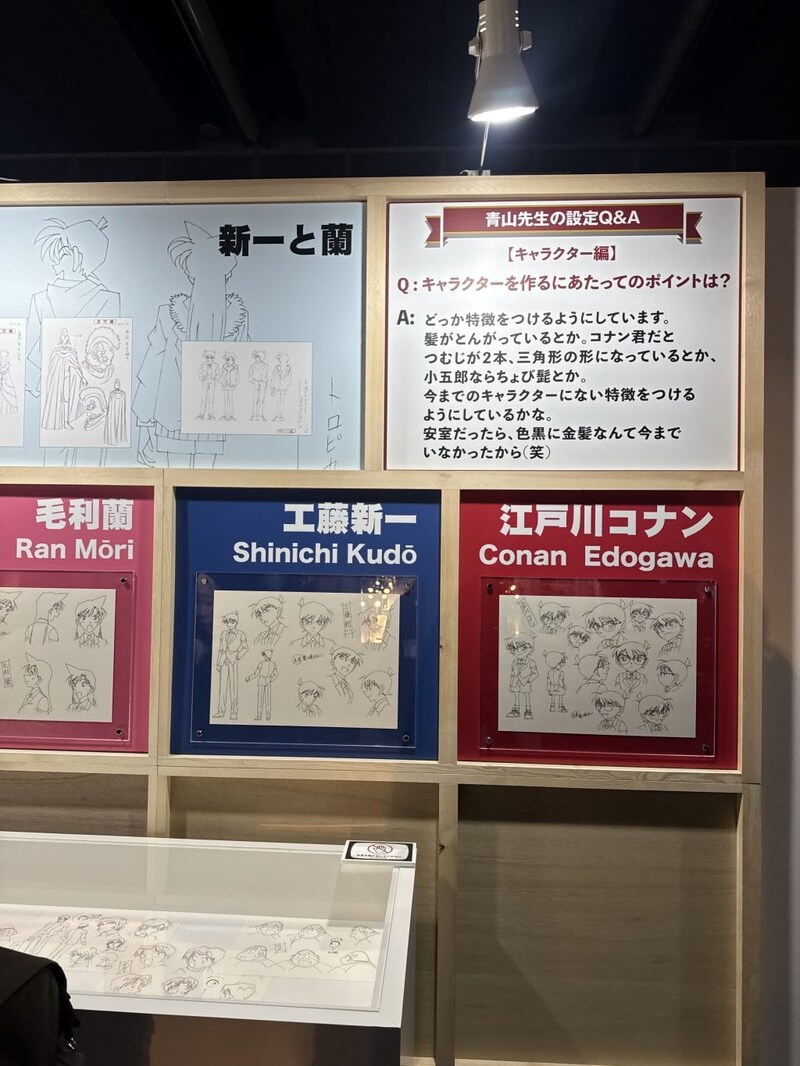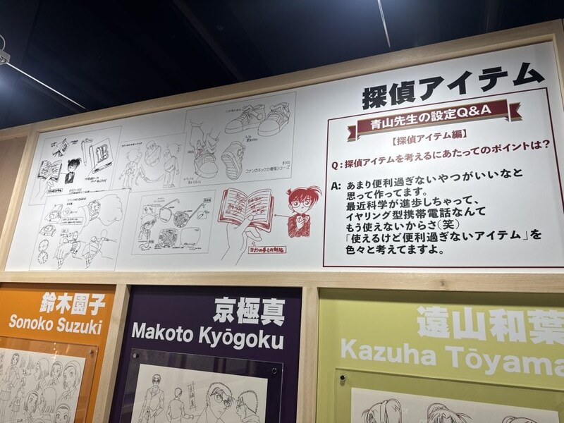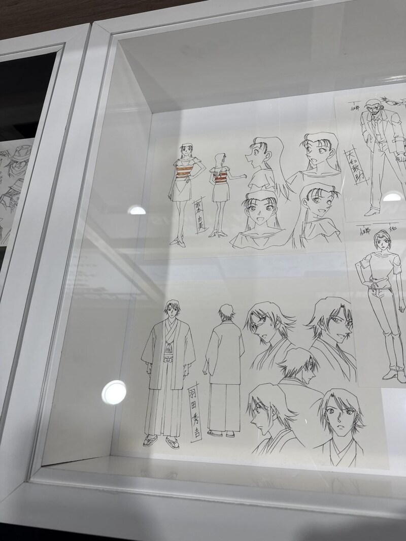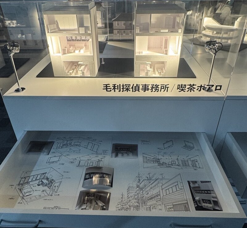 「企画」では、キャラクターデザインや美術設定資料などの展示が。実際の美術資料から作った、毛利探偵事務所などの模型展示は必見!