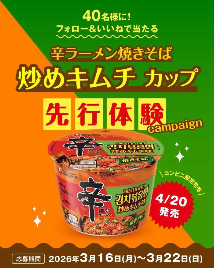 発売前の味を体験できる「辛ラーメン焼きそば炒めキムチカップ先行体験キャンペーン」も開催。辛ラーメン公式SNSをフォローし、対象投稿にアクションすることで応募できます。