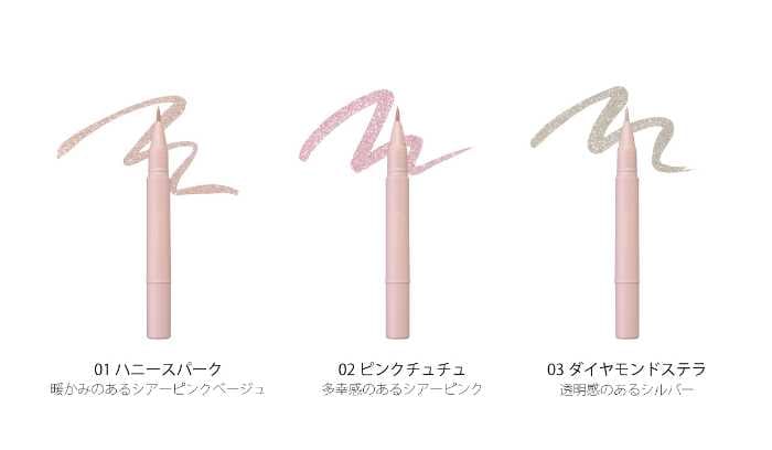 今回登場するのは、立体感のあるツヤ肌を演出するハイライトと、繊細ラメが輝くアイライナーの2アイテムです。