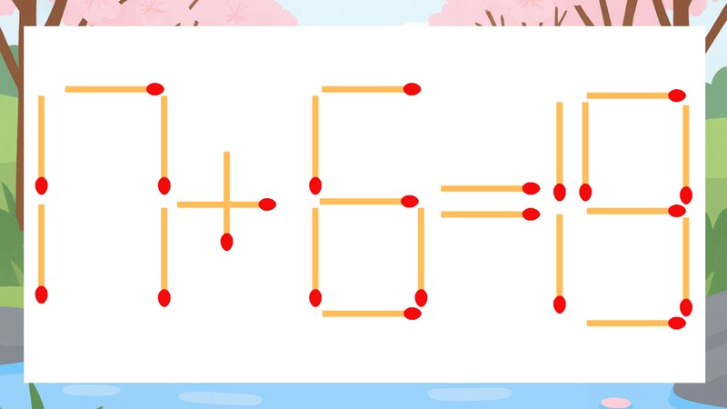 マッチ棒1本だけを別の場所へ移動して、式「8+3=5」を正しい等式に直してください。画像の中で“どの1本を動かすか”がポイントです。