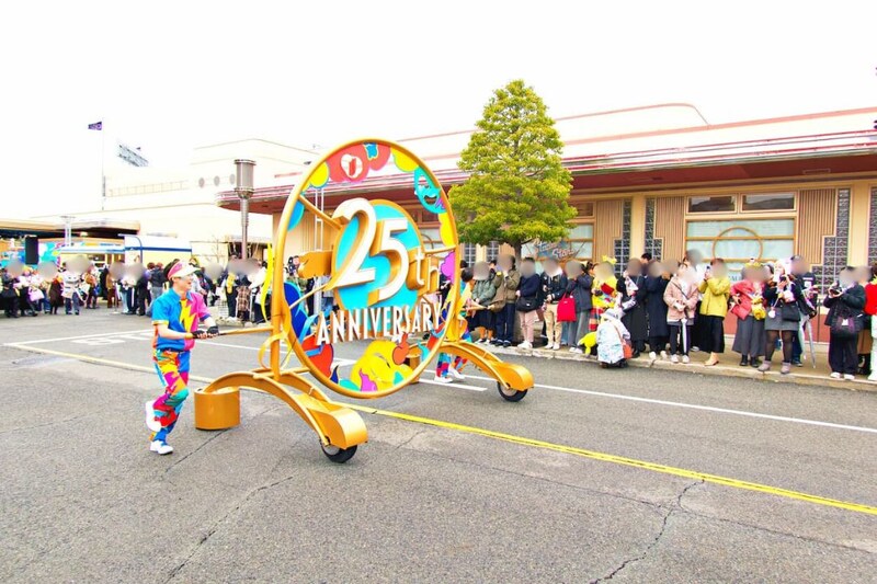 力強いサウンドにのり、全8台のフロートが次々と登場! そしてパークの仲間たちやエンターテイナーのコスチュームが25周年のお祝い仕様にアップデートされています。