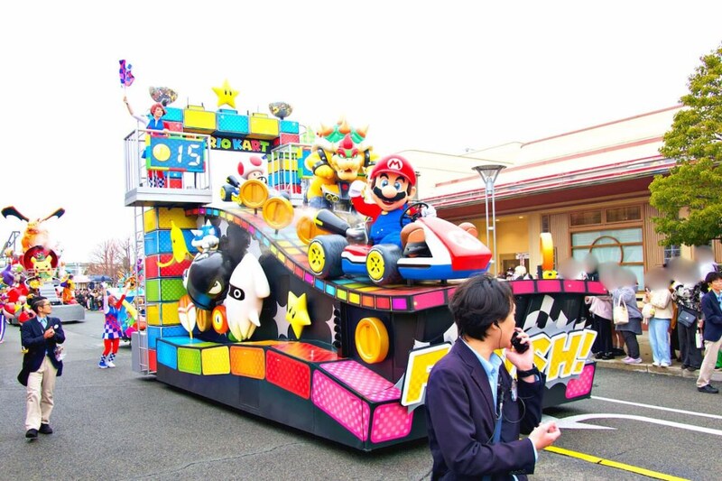 大人気のマリオのフロートも進化! 今回はクリスタルカラーのハテナブロックが登場し、パレードルートで「マリオカート」のレインボーロードのレースを再現する演出が楽しすぎます!