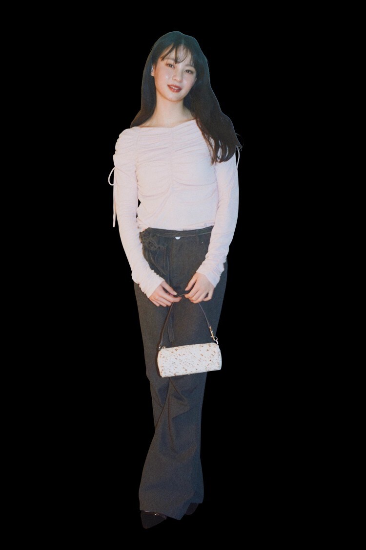 やわらかなギャザートップスにデニムを合わせた、甘さとカジュアルのバランスが絶妙なコーデ。ミニバッグとパンプスで女っぽさを添えれば、シンプルなのにしっかりしゃれ見え♡