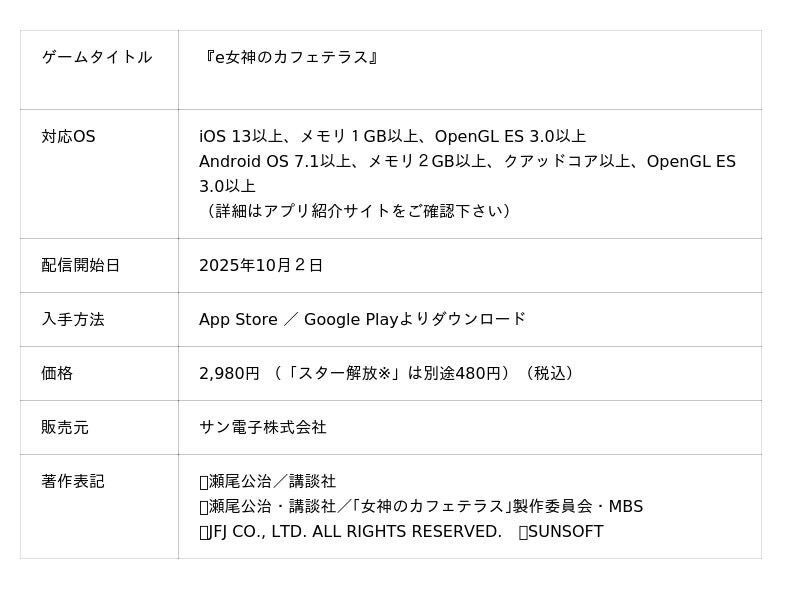 『e女神のカフェテラス』アプリダウンロードページ/アプリ紹介サイトURL