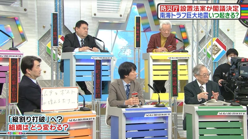 なお、新設予定の防災庁や南海トラフ巨大地震の想定被害などは、3月14日に生放送された情報バラエティ番組『教えて!ニュースライブ 正義のミカタ』(ABCテレビ)で取り上げられた。