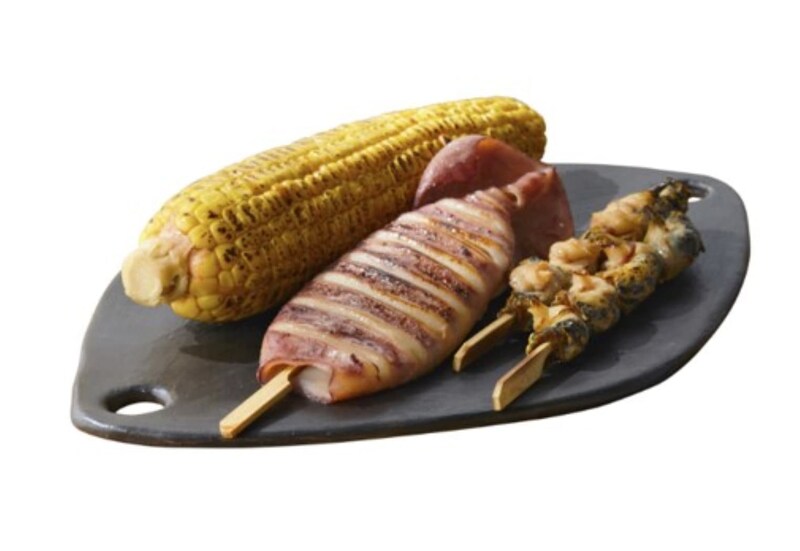 「帯広串〇」の「とうきび」(540円)、「いか姿焼き」(999円)、「つぶ貝串焼き」(702円)