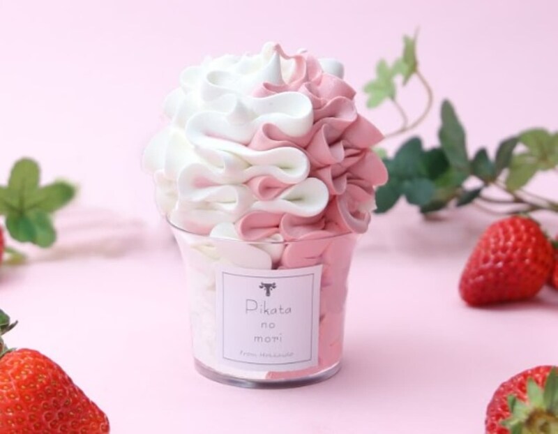 「ピカタの森 駒ケ岳牛乳」の「芸術ソフト~いちご~」(650円)