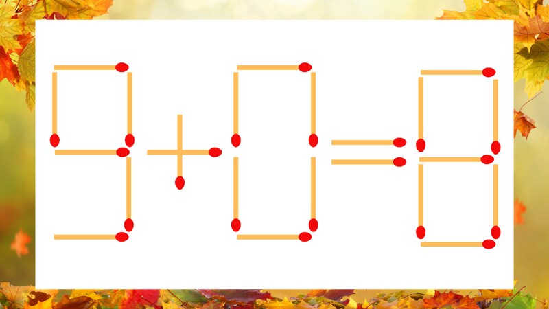 ▶ 【マッチ棒クイズ】1本だけ動かして正しい式に:9+0=8?