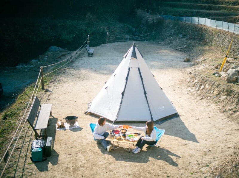 日帰り利用もできるキャンプ場「朝とれたまごBASE(ベース)」もお目当てに。生駒山の朝日と澄んだ空気の中で過ごす時間は、施設ならではの魅力です。