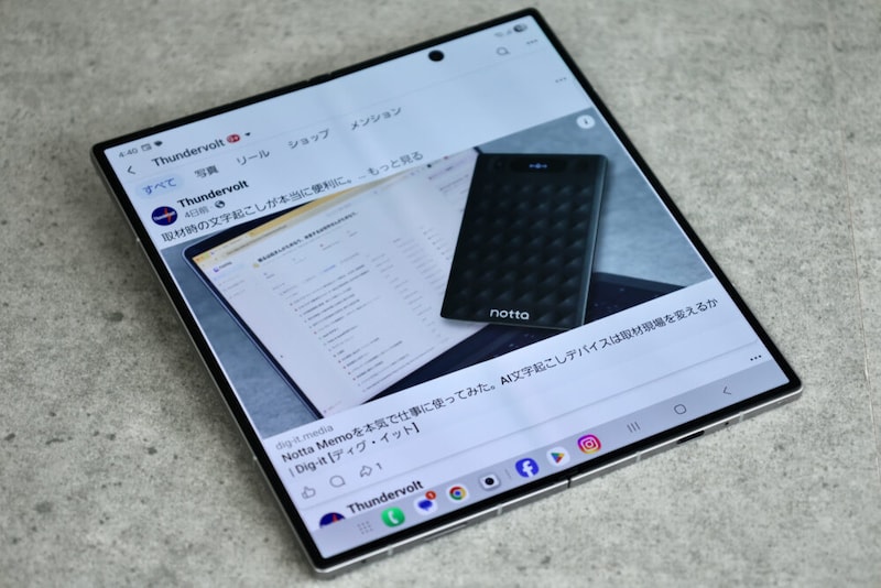 ThunderVoltの読者のみなさんも、私と同じようにアップル製品のことしか知らない方が多いと思うので、この2機種を簡単にご紹介しよう。Galaxy Z Fold7は、その名の通り7世代目の折りたたみ式の携帯。