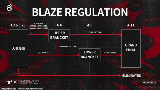 2025年より実施されている「BLAZE」は、ファン投票によって出場チームが決定する独自の形式を特徴としています。今回はオンライン予選を勝ち抜いたチームが、KONAMI eスポーツ学院で行われる決勝戦に進出します。競技性とエンターテインメント性を融合させた、次世代型のeスポーツイベントです。