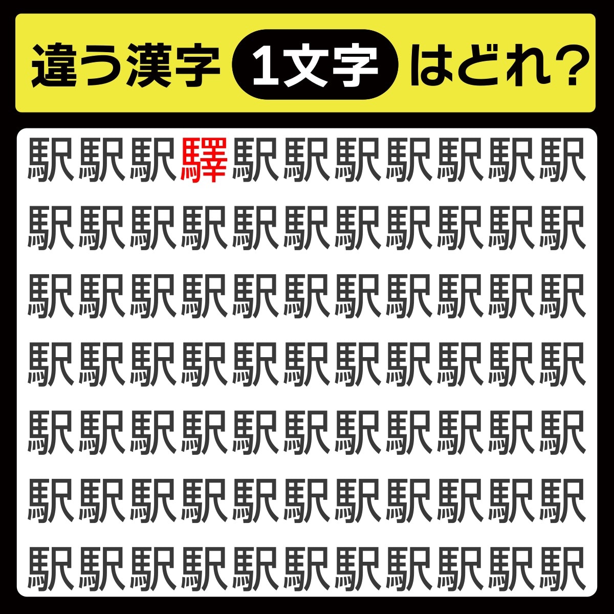 違う漢字は、上から1行目、左から4番目の文字でした!