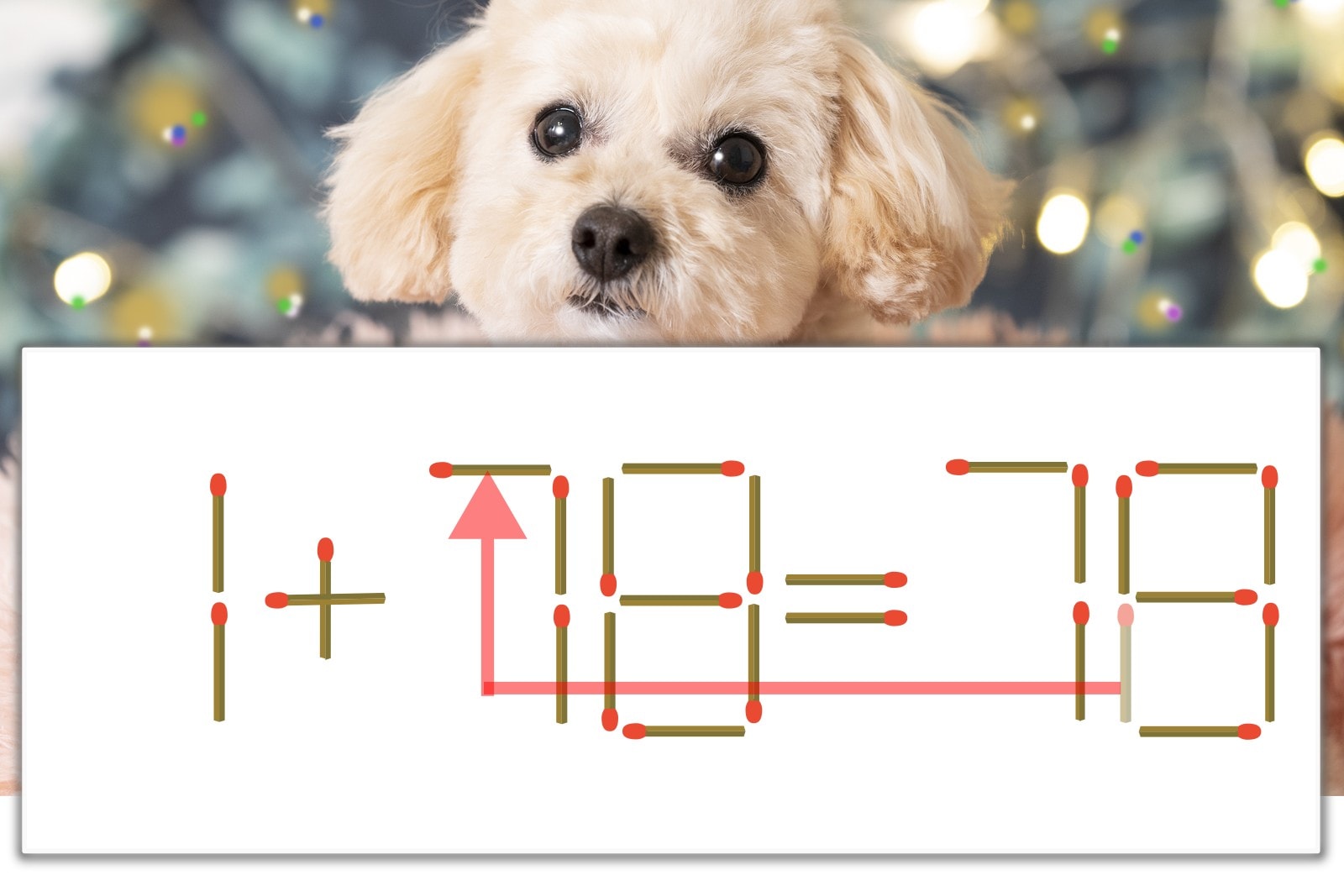 「8」を別の数字に変化させると答えが導き出せます。「8」のマッチ棒を1本移動して、「1」を「7」にしてみましょう。すると、「1+78=79」が成立します。