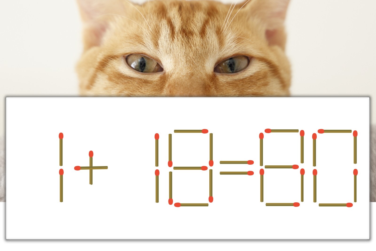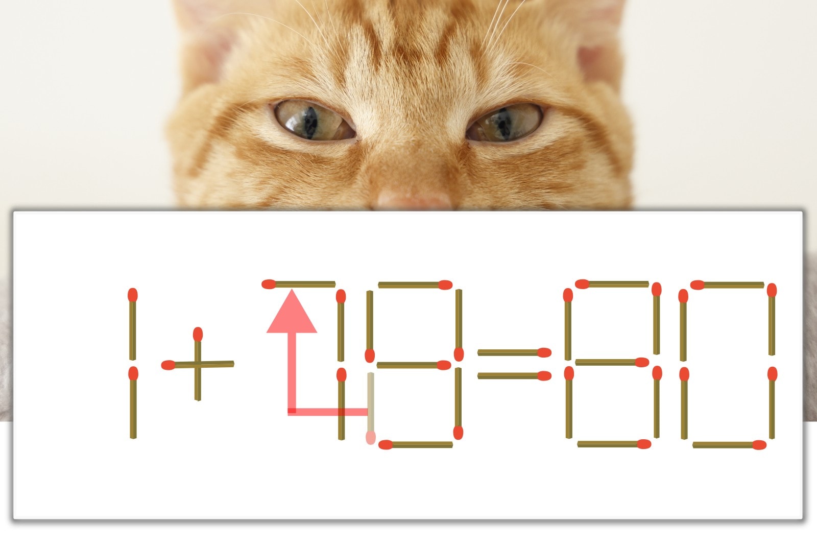 「8」を別の数字に変化させると答えが導き出せます。「8」のマッチ棒を1本移動して、「1」を「7」にしてみましょう。すると、「1+79=80」が成立します。