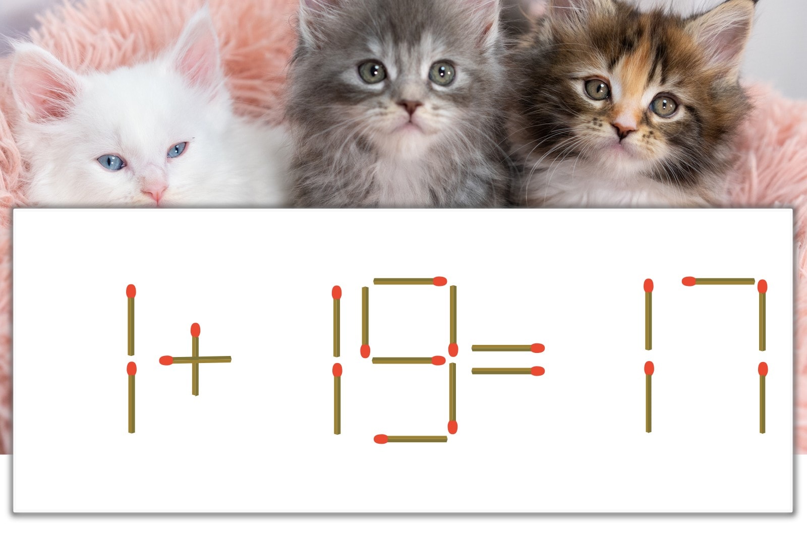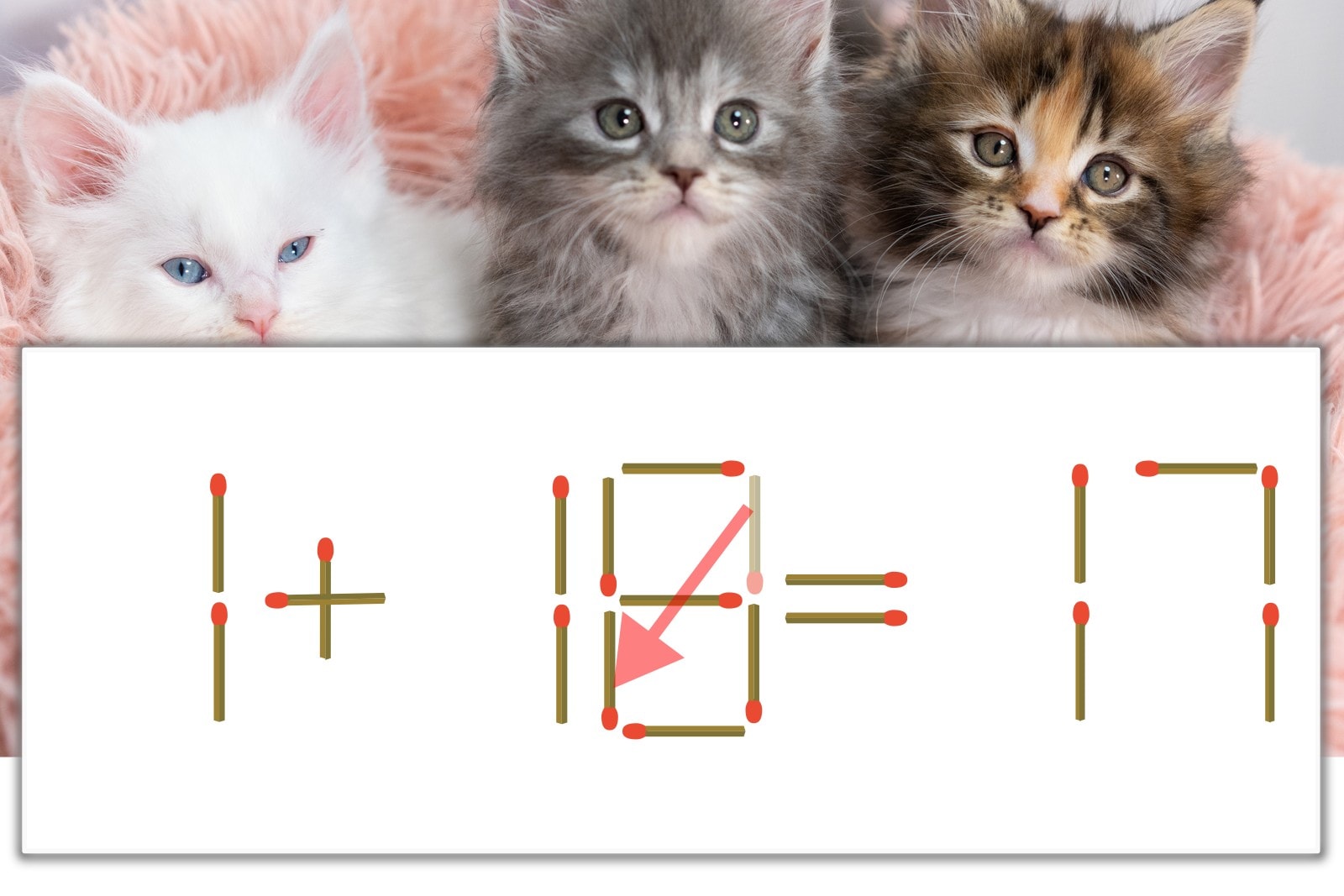 「9」を別の数字に変化させると答えが導き出せます。「9」のマッチ棒を1本移動して、「9」を「6」にしてみましょう。すると、「1+16=17」が成立します。