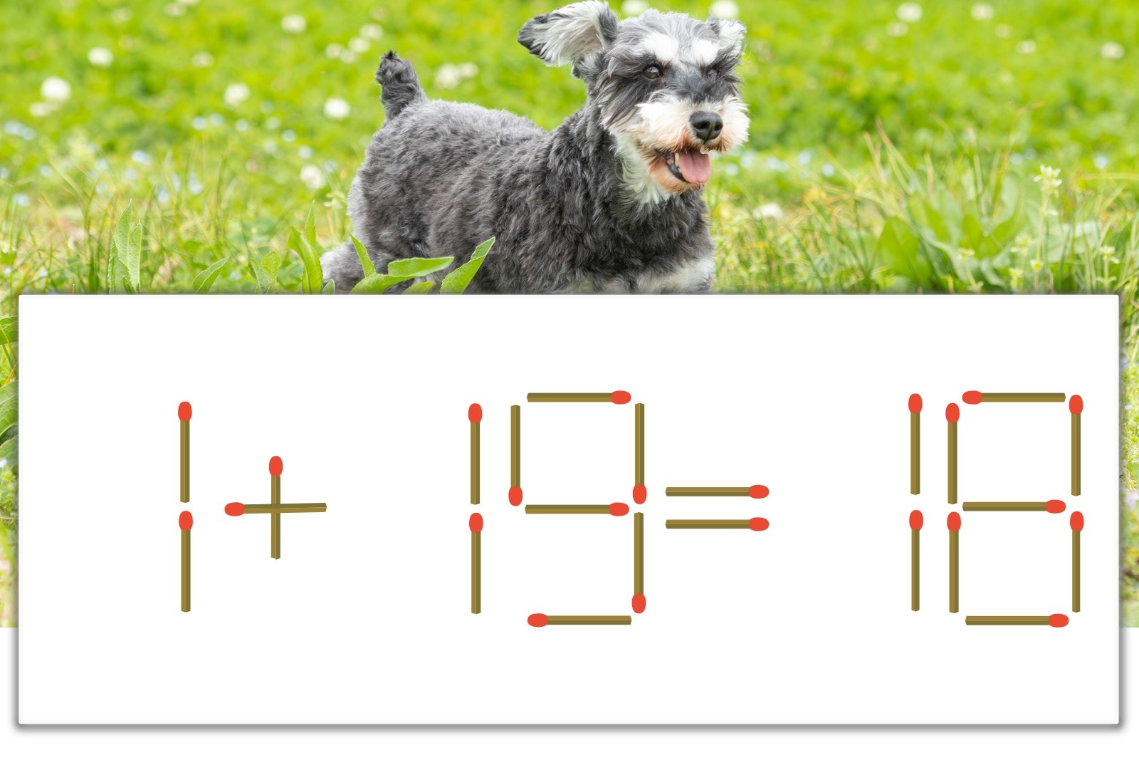 「8」を別の数字に変化させると答えが導き出せます。「8」のマッチ棒を1本移動して、「9」を「8」にしてみましょう。すると、「1+18=19」が成立します。