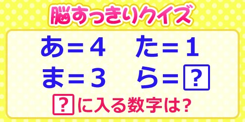 「あ」=4、「た」=1、「ま」=3の時、「ら」=?の答えは?