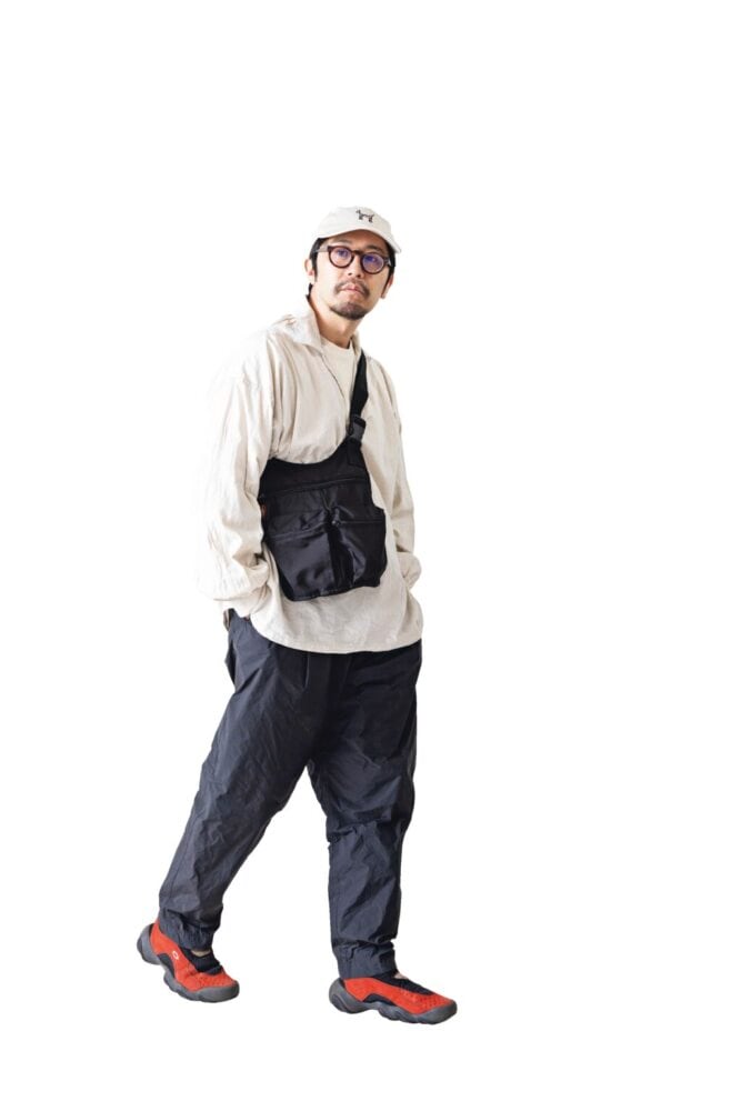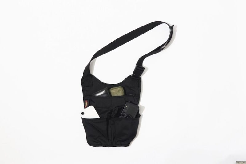 90年代に実在したアーカイブをもとに製作した[バイシクルショルダー]。その名の通り自転車に乗る際の体に沿いペダリングを妨げないシルエットが特徴だ。提案は街使い。サブバッグとしても活躍し、スマホや財布などの手回り品が収まるサイズ感も実にちょうどいい。1万3200円