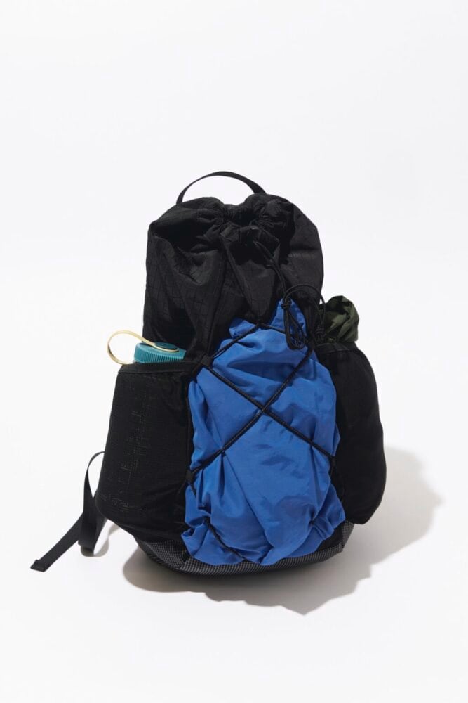 リップストップナイロンのボディ、サイドには水筒がすっぽり入る大ぶりなメッシュポケット。正面にはドローコードを備え、アウトドアのULカルチャーを感じさせる。日帰りハイキングなどのライトなアウトドアから街使いまでを想定した万能なバックパックだ。8月発売。1万4850円
