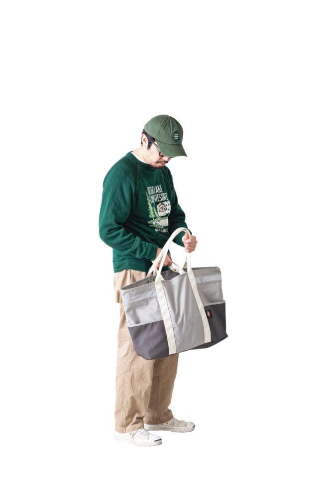 その名に恥じない、十分な容量とタフさを備えたトートバッグ。サイドポケットとボトムには耐水性のある生地を採用し、川や湖へ持ち出す際も安心だ。大荷物のときに頼りになる、肩掛けと手持ちの両方に対応する2WAYハンドル仕様という点も見逃せない。8月発売。1万1500円