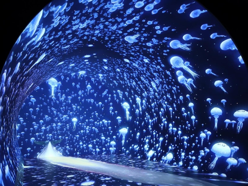突如現れる、幅5m・奥行き8m・高さ4mの「LEDイマーシブトンネル」に足を踏み入れると、まるで深海に潜り込んだような感覚に。
