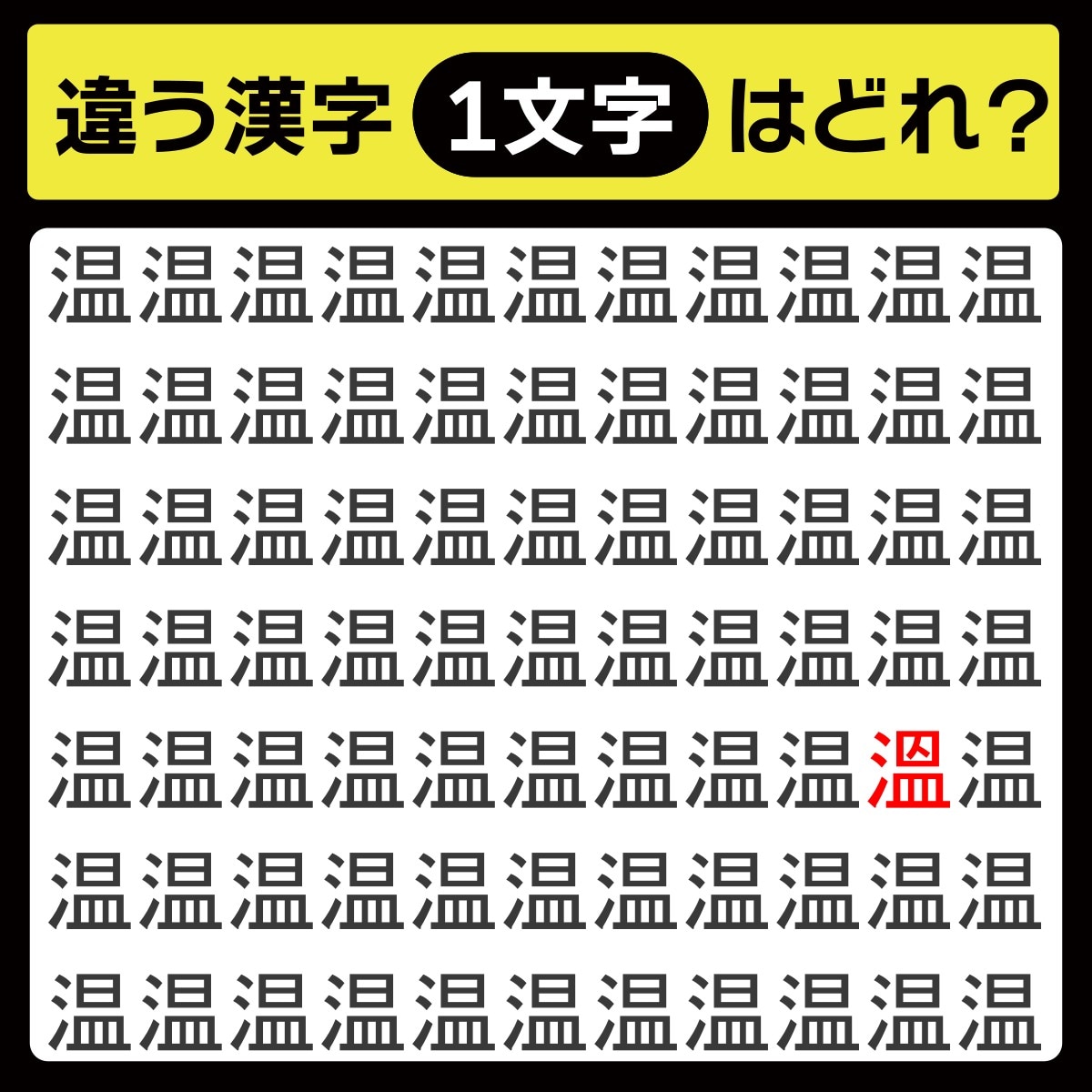 毎日配信中「毎日脳トレ」の時間です! 本日のクイズは「漢字のまちがい探し」に挑戦♪ 同じ漢字が並んでいるように見えますが、実は1つだけ違う漢字が……。よ~く探してみてください!