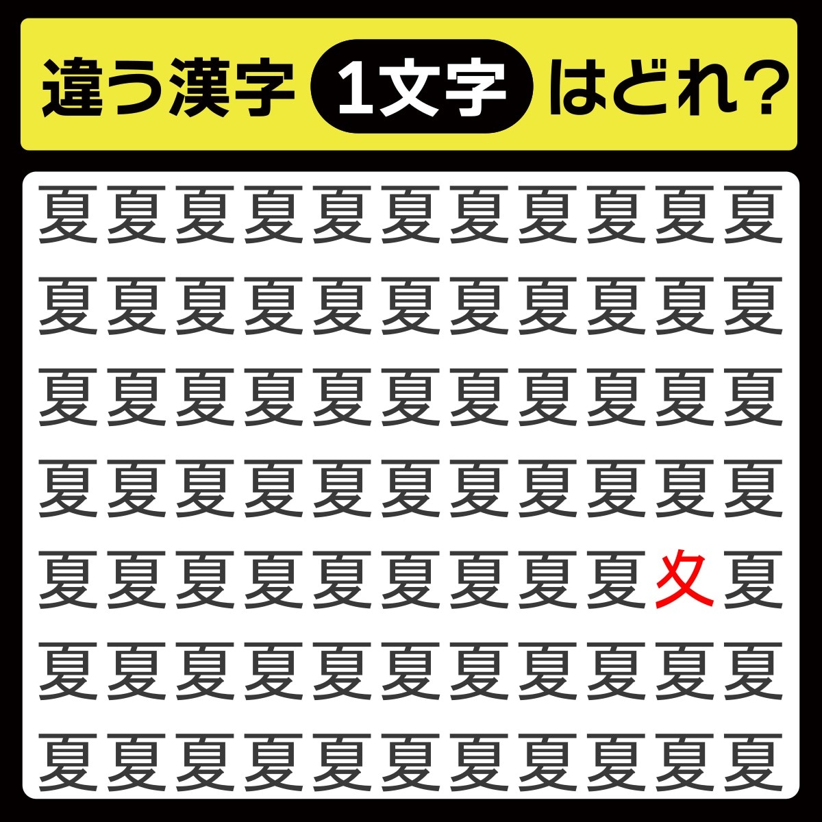 違う漢字は、下から3行目、右から2番目の文字でした!