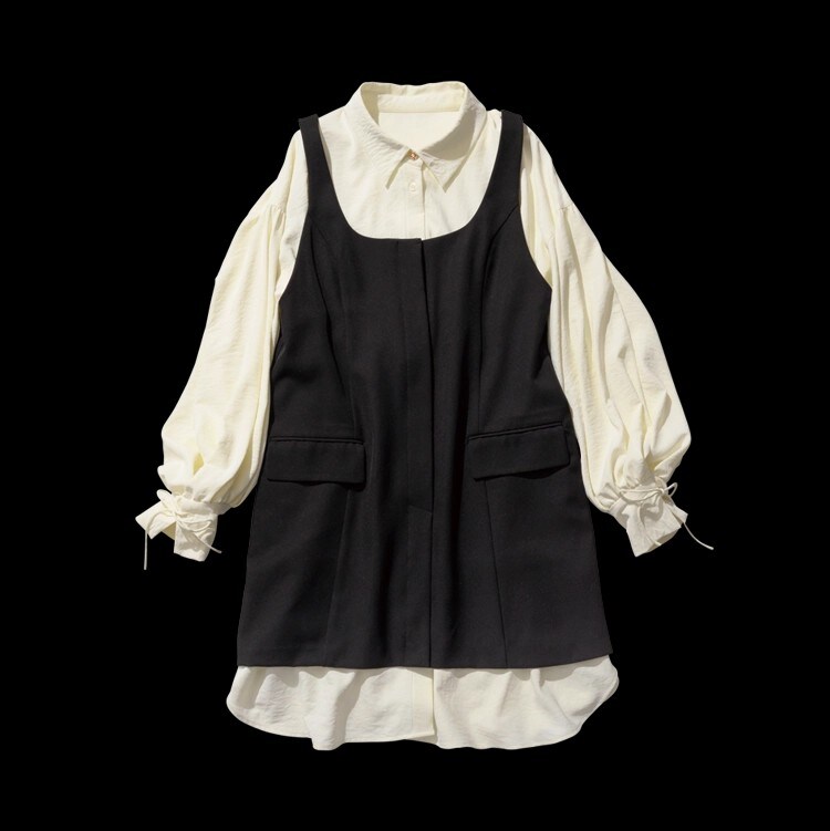 スーツライクな黒ワンピできちんと感を演出しつつ、クリームイエローのシャツでハズせば、センスのよさも同時にアピールできちゃいます♡