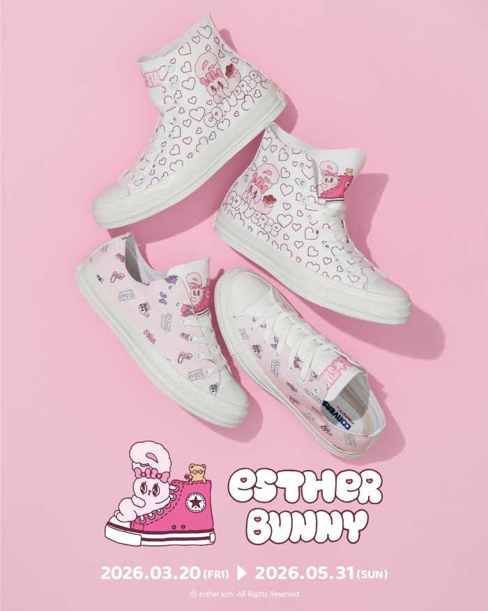 自分好みにアレンジできるコンバースの人気カスタマイズサービスに、ガーリーでポップな魅力が詰まった「エスターバニー」デザインが仲間入り♡見るたび気分が上がるキュートな世界観は、足元からおしゃれを楽しみたい女性にぴったり。自分だけの一足を作れる特別感にも注目です♪
