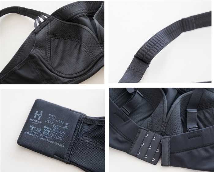 さらに、カップ裏はメッシュ素材でムレにくく快適。クッション性のある調整可能なストラップは肩への負担を軽減し、長時間の着用でもストレスフリーに過ごせます。