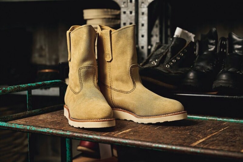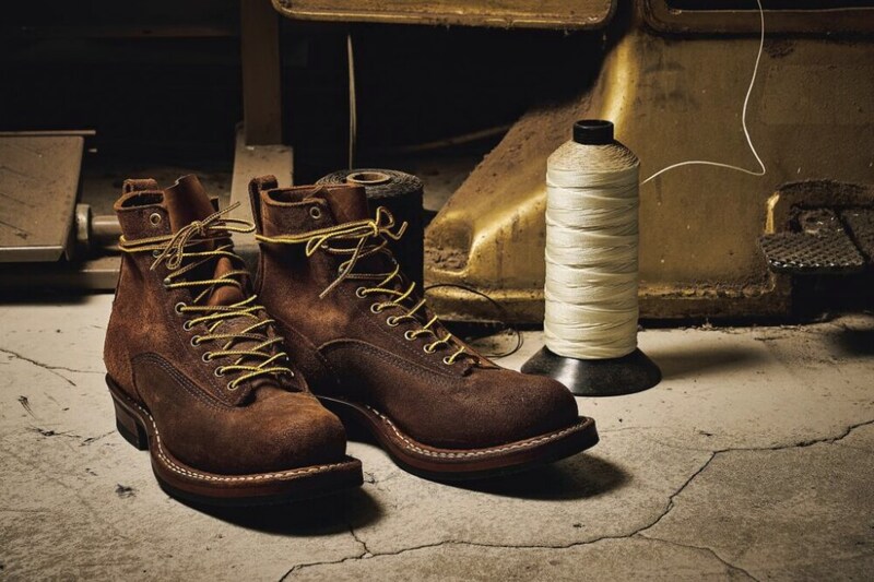 分厚くオイルたっぷりなディストレストレザーを使用したスモークジャンパー。「アメリカの職人さんたちから人気の高い革で、ガンガン履きたい人向け。明るめの革で6インチと相まって重くなりすぎず、合わせやすいのがポイントです」207,900円