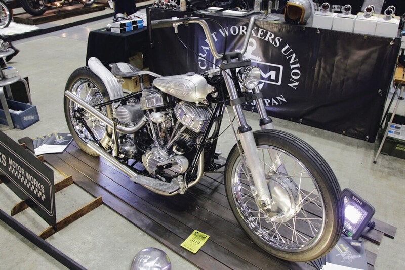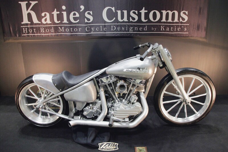 「ケイティーズカスタムズ」によるパンヘッドボバー。アンフィニッシュだがカルマグ風ホイールや外装の作り込みで新しいスタイルを思わせる。