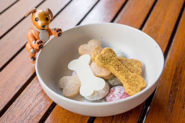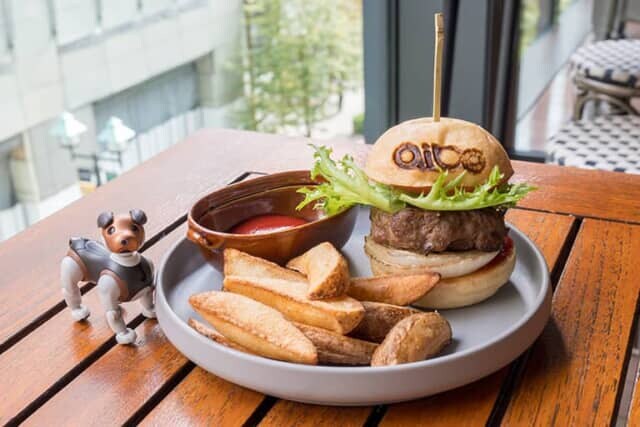 セイボリーはaiboのおやつやご飯にそっくり。そのうえハンバーガーは和牛を使った本格派。「aiboのカリカリ」も登場します。